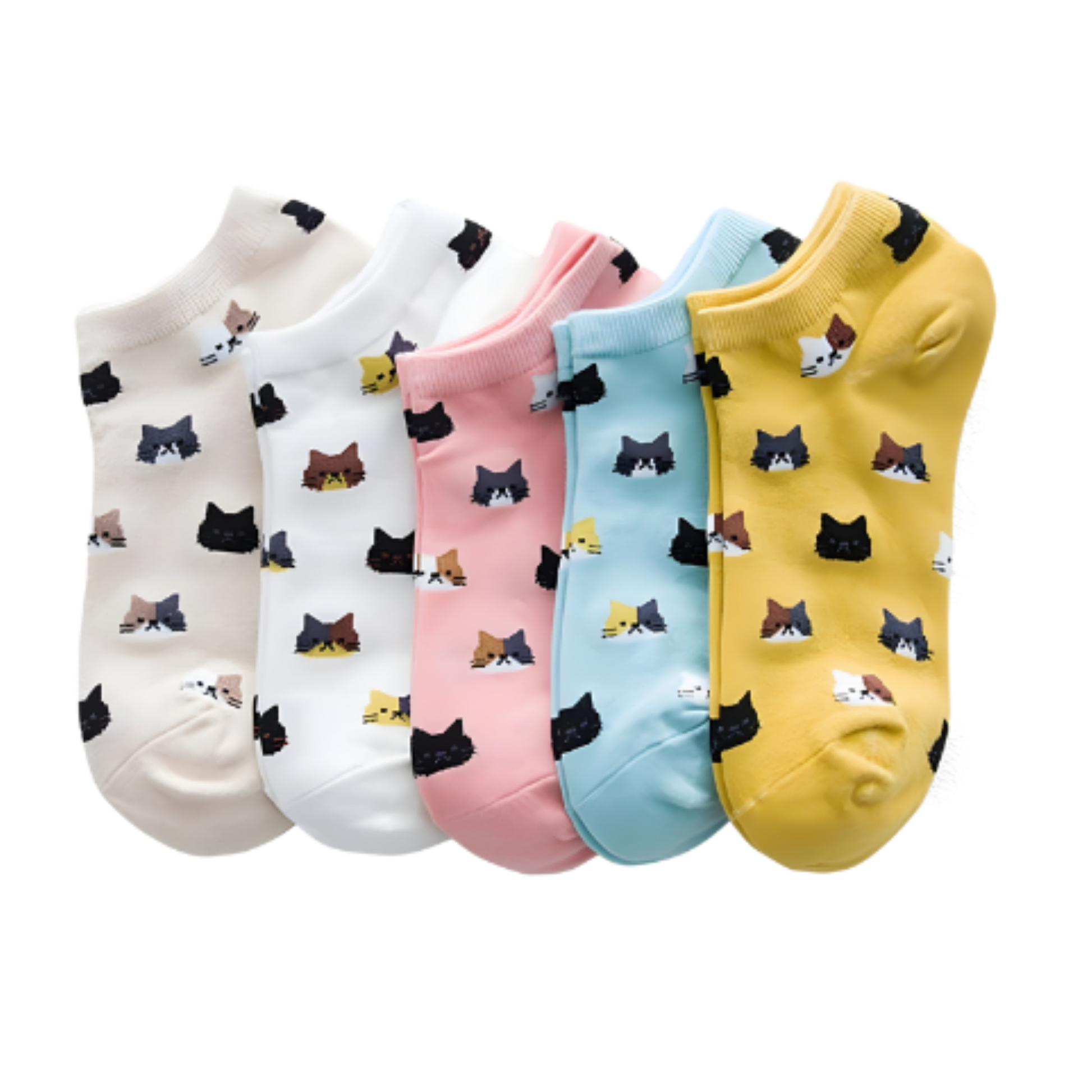 Renueva tu estilo diario con este pack de 5 pares de calcetines de tobillo decorados con encantadores diseños de gatitos de dibujos animados. Un equilibrio perfecto entre frescura y sofisticación, pensados para quienes valoran los pequeños detalles que marcan la diferencia.