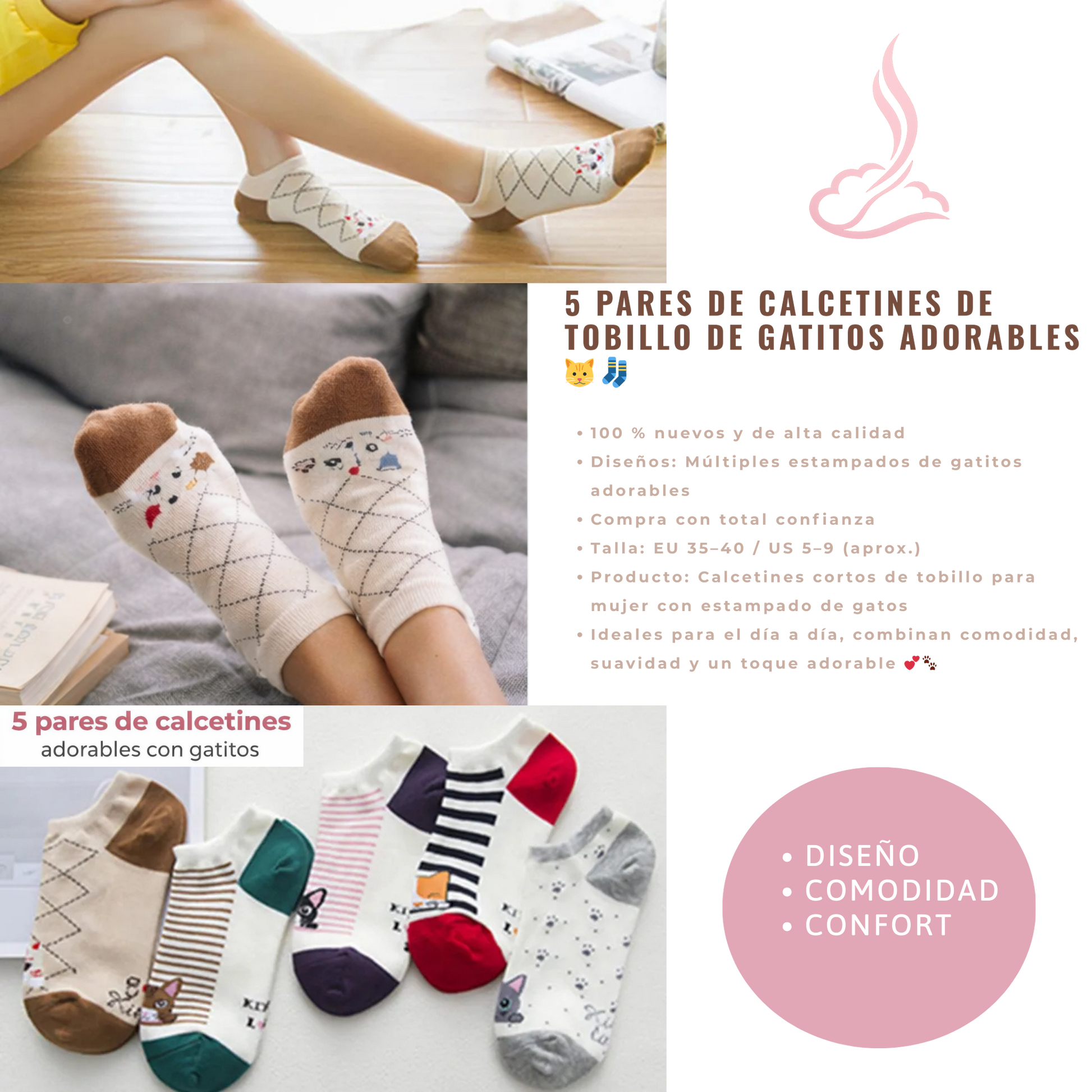 - 🌸 Pack de 5 pares variados con estampados múltiples para no repetir nunca.